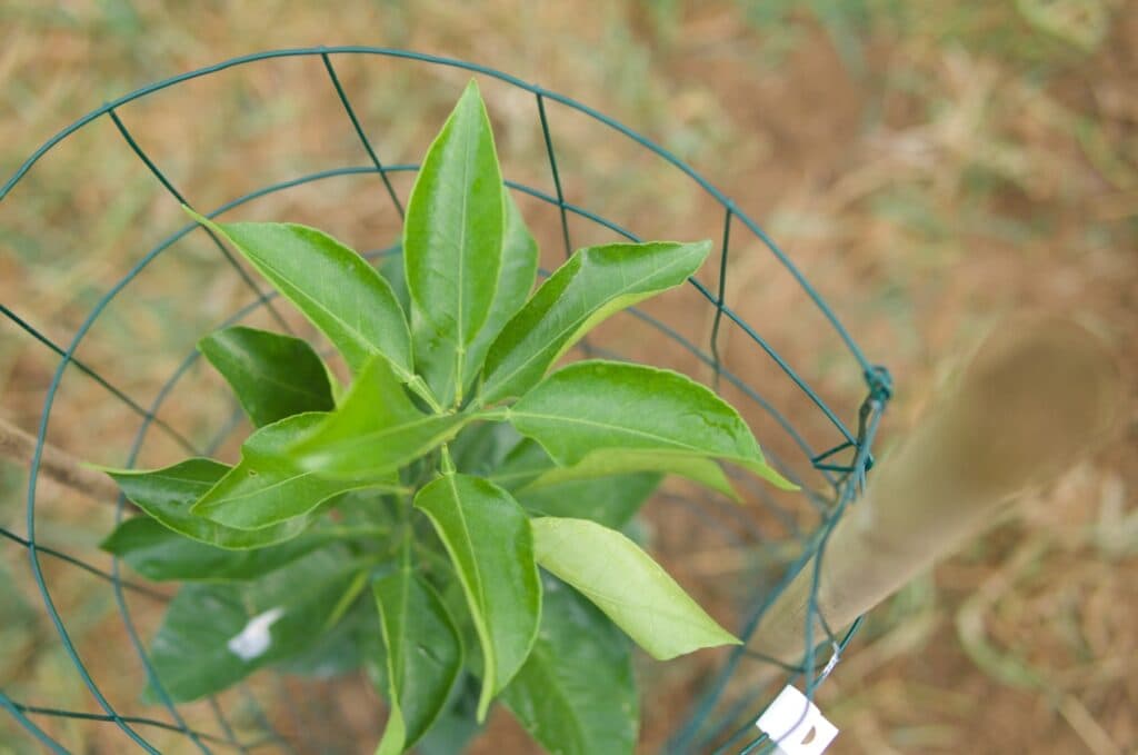 - Problème récurrent avec les agrumes, les jeunes feuilles se font bouffer par les limaces et les escargots. Donc on protège avec un petit sachet.