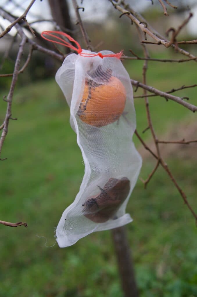 - Des kakis protégés des oiseaux dans leurs filets. Un olivier que j’ai planté il ya deux ans mais il ne grandi pas, il perd ses feuilles régulièrement sans pour autant mourrir… donc on va attendre.