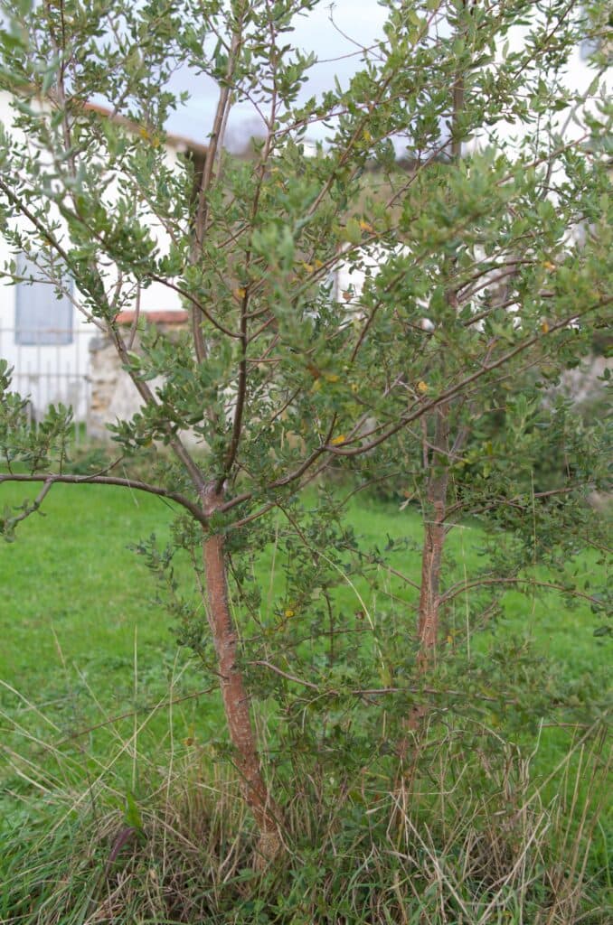 J’ai récupéré dans la montagne les graines d’un cognassier de chine, ce qui donne un arbre avec un tronc joli et des feuilles qui tournent au rouge à l’automne.